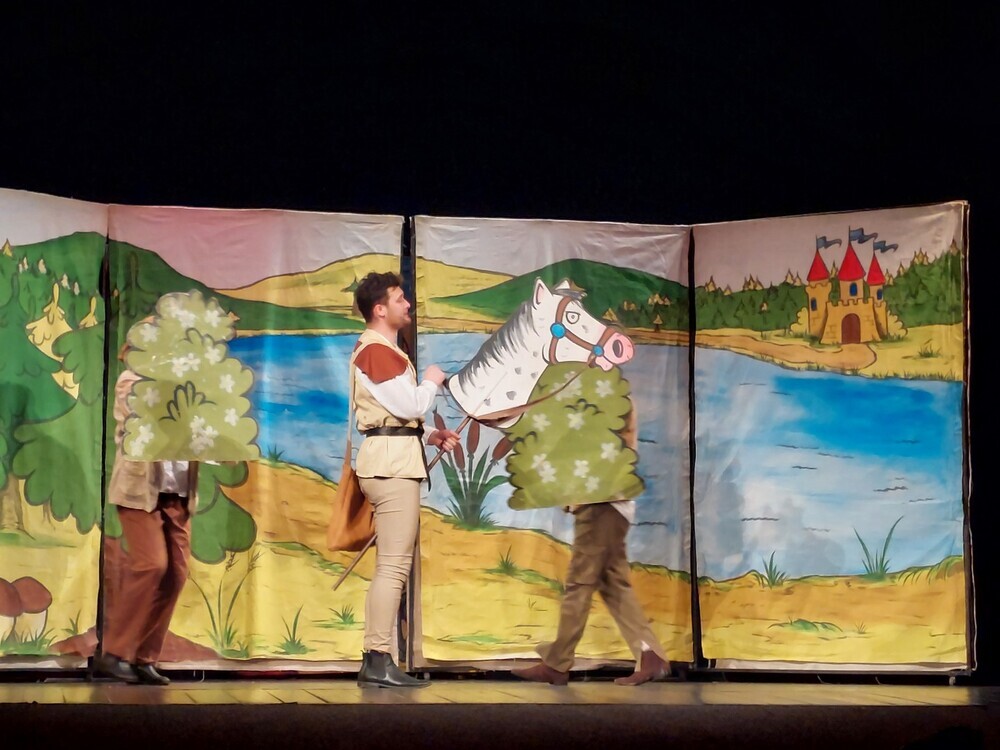 Napjatě jsme čekali, jaké pojetí této všem dokonale známé pohádky si pro nás herci připravili. K našemu velkému překvapení a radosti šlo o tradiční ztvárnění, které vychází televizní verze s překrásnými písničkami Angelo Michajlova a texty Eduarda Krečmara, jako např. Pluj planá růže, Jiříku, co v očích máš?, Jsi mé slunce nad hlavou nebo Já ti prstýnek dám, které si spolu s herci notovali snad všechny přítomné paní učitelky. Příběh této pohádky asi netřeba představovat, Jiříkovu pouť za zlatovlasou kráskou, na jejímž začátku byla pečínka z kouzelného hada, díky které zlý král i statečný Jiřík porozumějí řeči zvířat, všichni známe. A tak mohou děti sledovat Jiříkovu pomoc mravencům, hladovým ptáčatům i ulovené rybě i to, jak se mu pak zvířata odmění, když mu pomohou splnit tři přetěžké úkoly a odvést Zlatovlásku na hrad zlého krále a nakonec… ale vždyť to zná každé malé dítě.